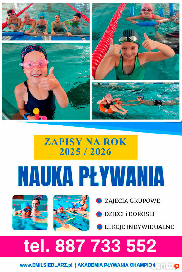 Zapisy na naukę pływania w Chełmcu – semestr 2025/2026Wrzesień to najlepszy moment, aby rozpocząć naukę pływania. Od 2016 roku prowadzę zajęcia w Aqua Centrum Chełmiec (ul. Marcinkowicka 9a), ucząc dzieci od 4 lat, młodzież, dorosłych i seniorów. Pływanie to nie tylko sport – to umiejętność, która daje bezpieczeństwo, zdrowie i pewność siebie.